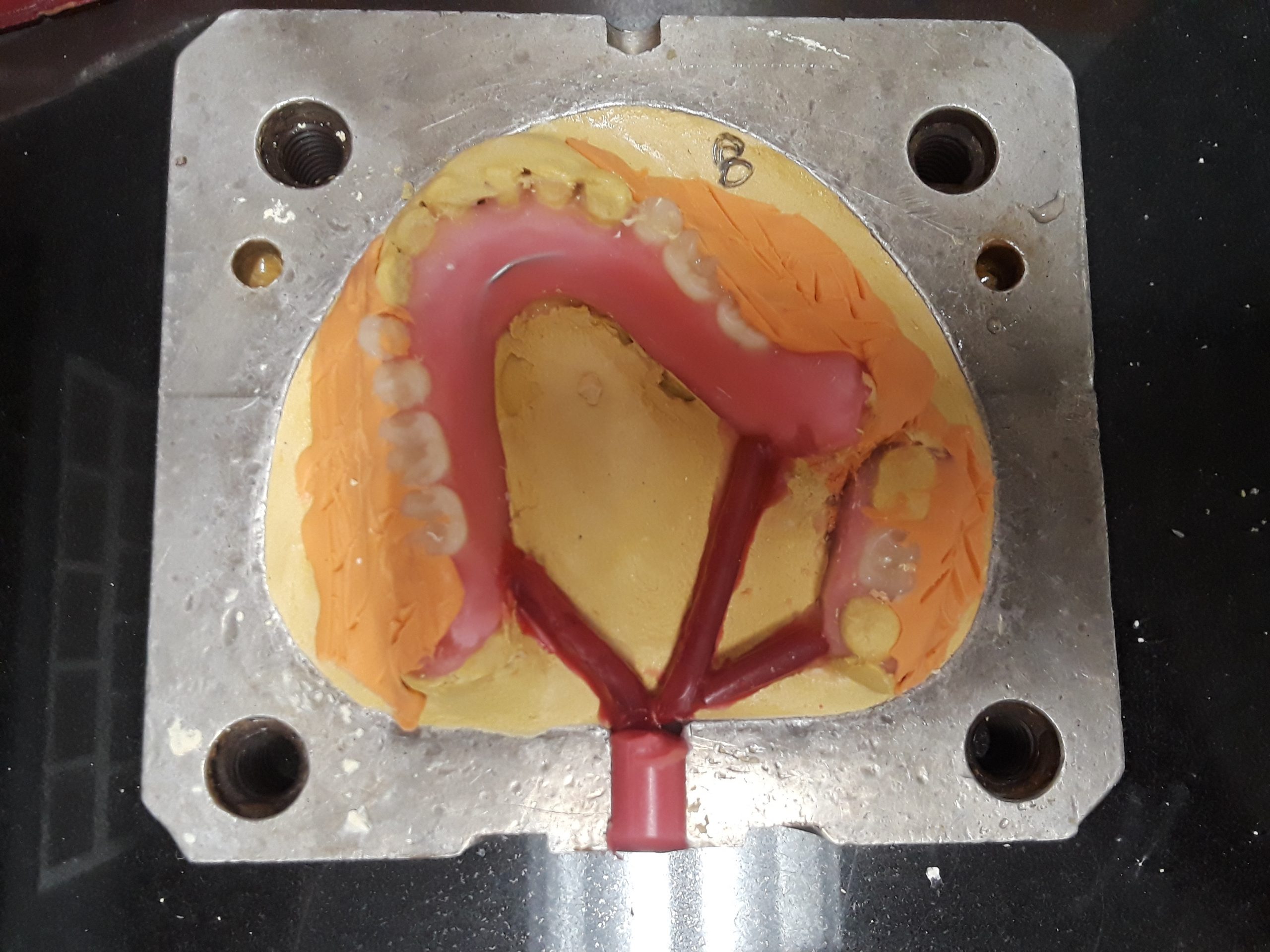 Using more than two or three sprues will slow down the flow of the material, thus increasing the chance of bubbles and/or a miscast. Using two sprues is more than enough when spruing for partial dentures , but depending on the case, adding a third sprue down the middle is also okay. For Karadent™ full dentures using three sprues is always recommended.